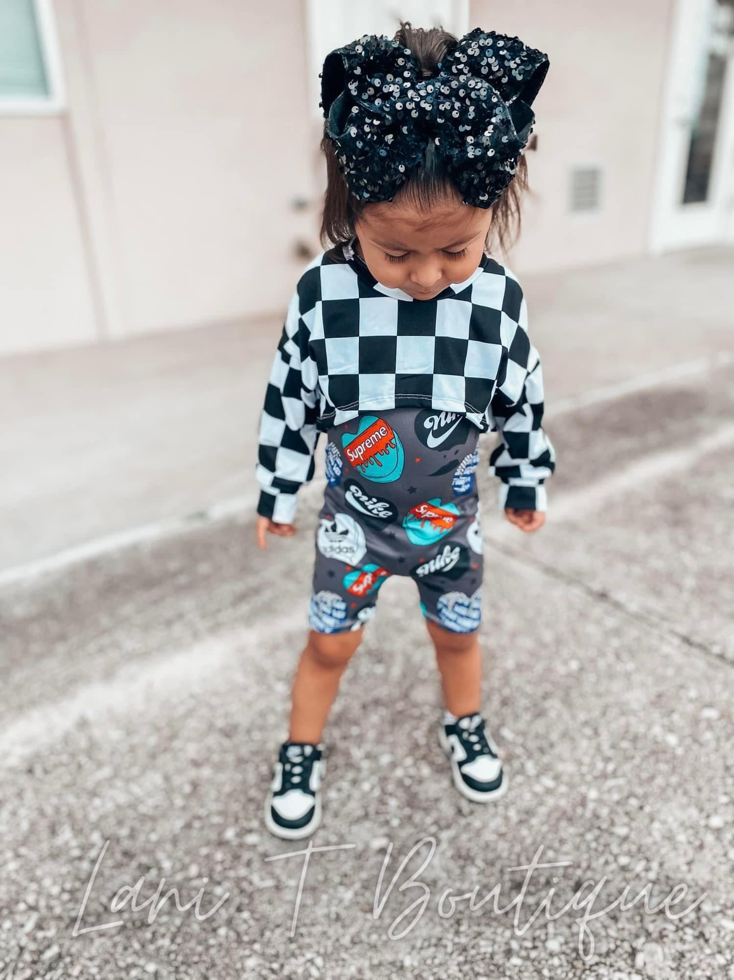 The honey top is the checkered top in the picture! It has a short sleeve or long sleeve option. Let me know which one you prefer in the notes. It is perfect to cover up for that crazy texas weather when it's chilly in the morning & warm by noon!